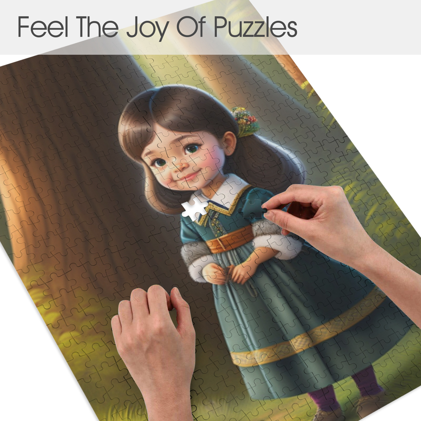 Whether you’re an admirer of whimsical art, a nature enthusiast, or simply seeking a heartwarming and uplifting puzzle experience, “A Little Girl In The Woods Jigsaw Puzzle” promises an engaging and delightful journey. Lose yourself in the enchanting scene as you unravel the mysteries of this magical image. Let the innocence and wonder of the little girl’s adventure inspire you with every piece you place.