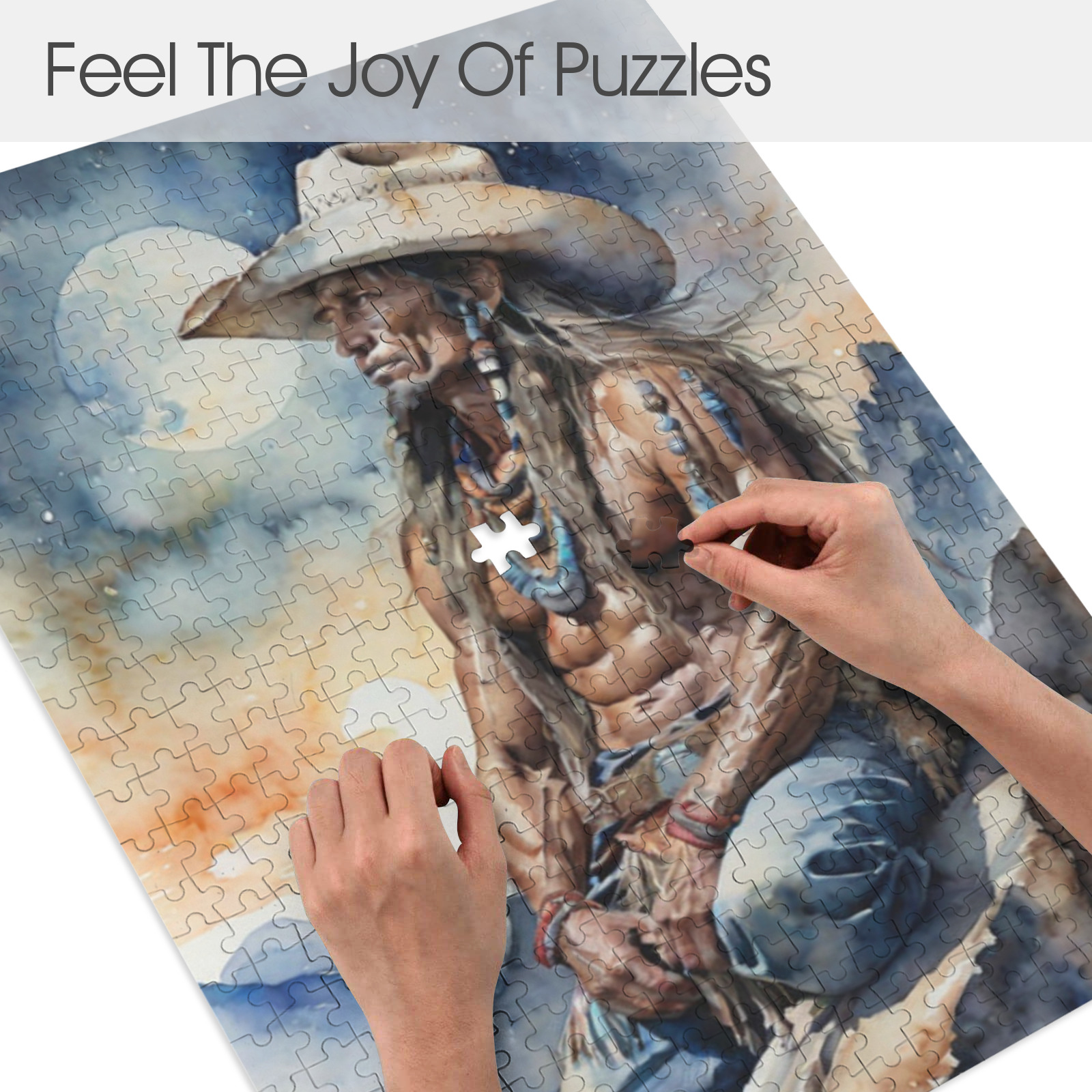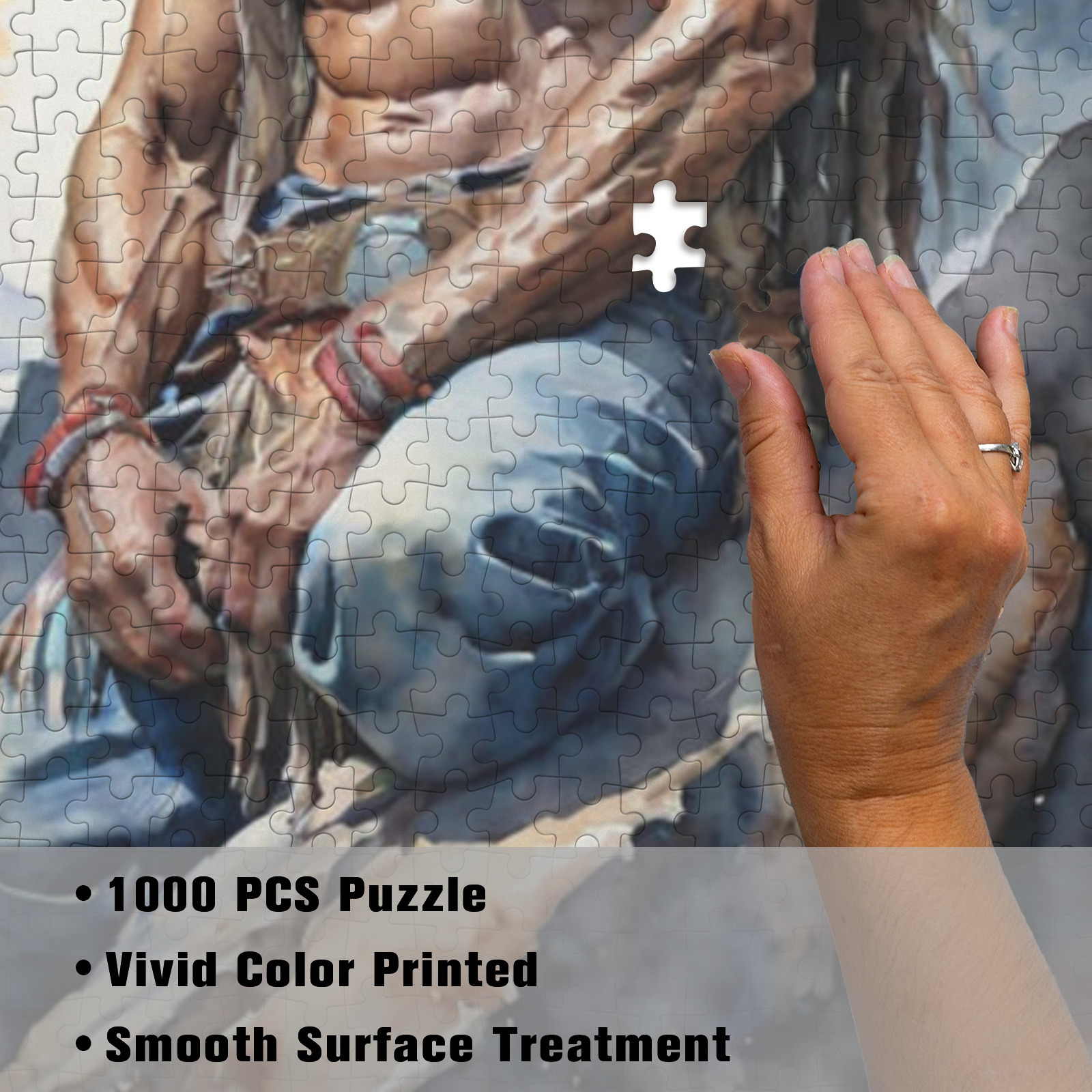 As you piece together the Water colored Portrait, you’ll encounter a captivating tableau of a man standing alone. His silhouette outlined against the vast expanse of the landscape. Each fragment of the image tells a story of introspection and quiet contemplation. It’s inviting you to explore the nuances of emotion and thought captured within.