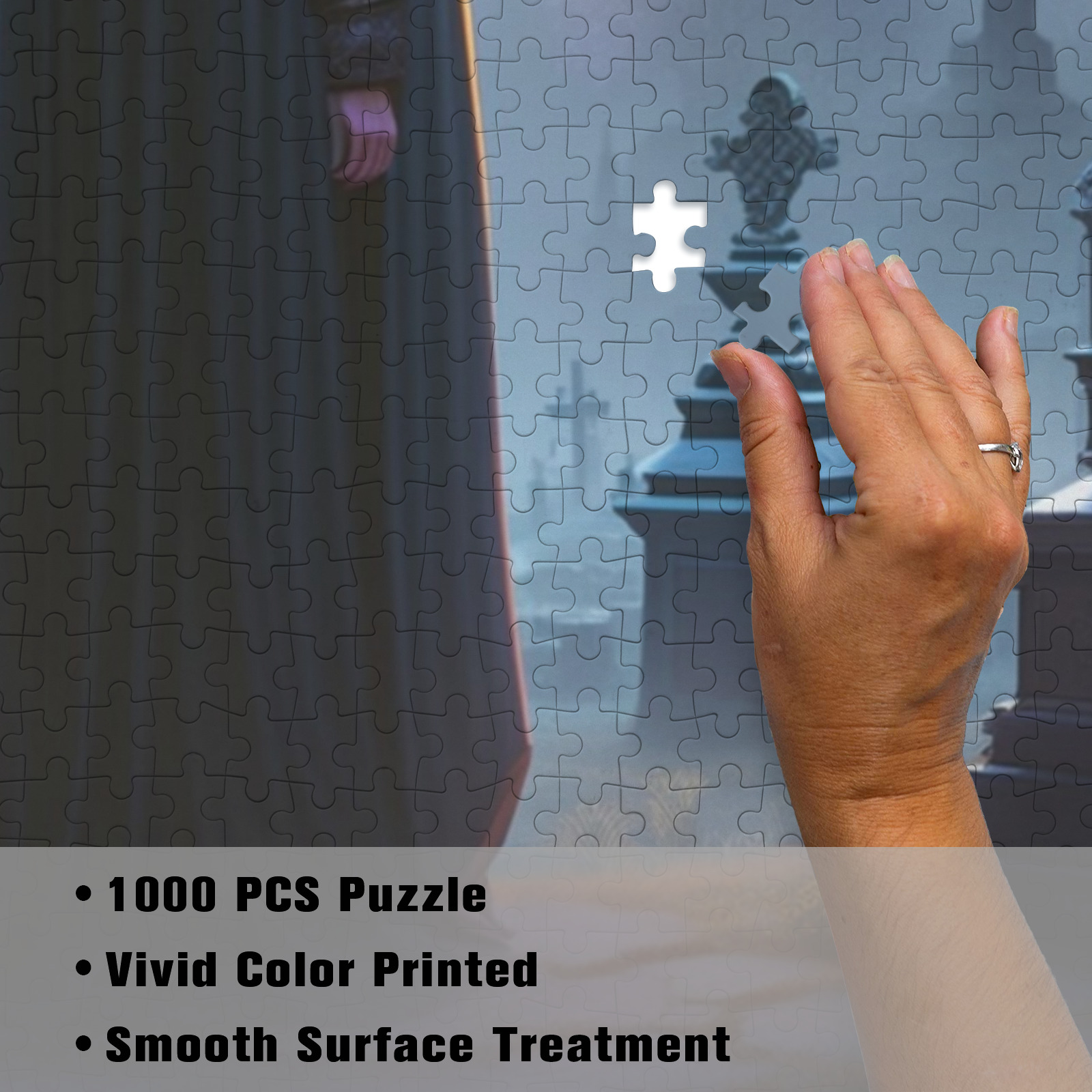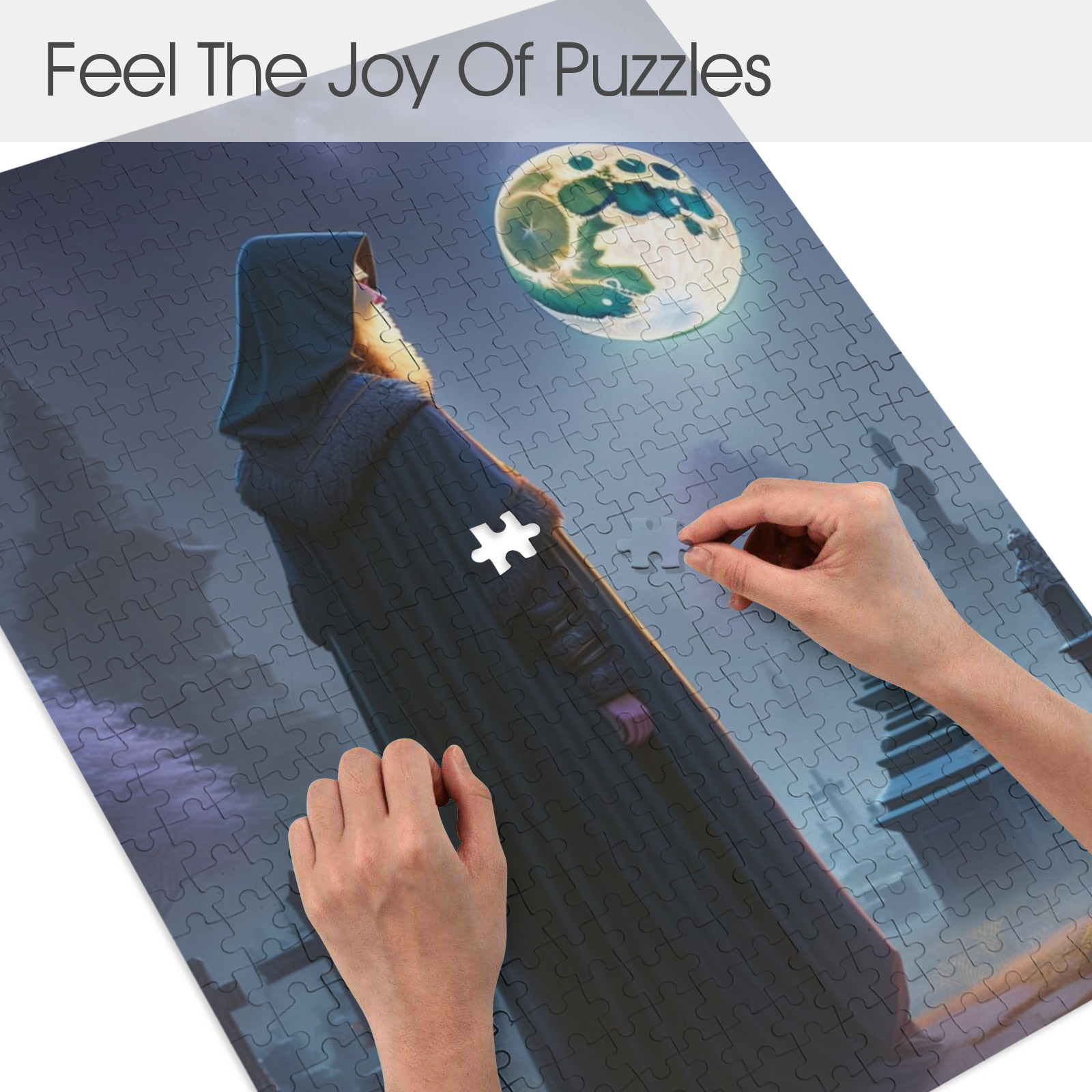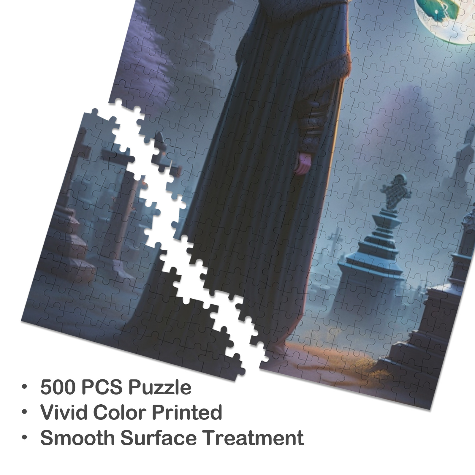 As you piece together the puzzle, you’ll encounter a mesmerizing tableau of a wizard in flowing robes. His staff glowing with mystical energy as he performs ancient spells under the moonlit sky. The gravestones and gnarled trees around him create a hauntingly beautiful backdrop, evoking a sense of wonder and suspense. Each fragment of the image tells a story of enchantment and the supernatural. it invites you to explore the delicate patterns and mysterious elements of the graveyard scene.